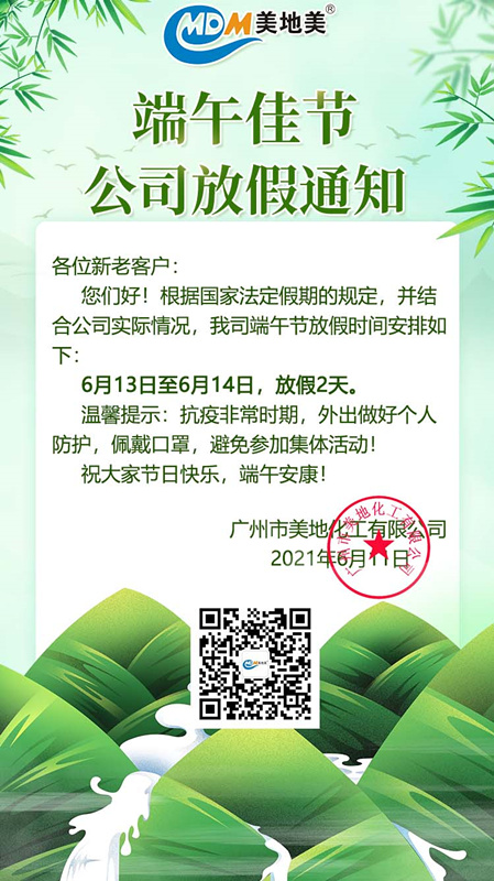 端午佳節(jié)丨美地化工端午節(jié)放假通知
