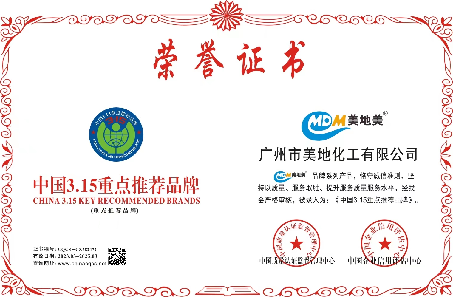 美地美地坪漆品牌系列產(chǎn)品,恪守誠信準(zhǔn)則、堅(jiān)持以質(zhì)量、服務(wù)取勝、提升質(zhì)量服務(wù)水平,已經(jīng)被評(píng)為中國(guó)3.15重點(diǎn)推薦品牌,查詢網(wǎng)址:www.chinacqcs.net,證書編號(hào):CQCS-CX682472。
